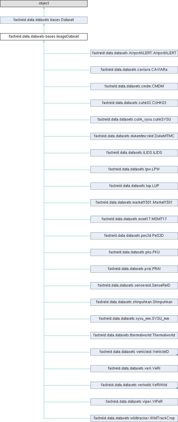 Reimplemented in fastreid.data.datasets.market1501.Market1501, fastreid.data.datasets.AirportALERT.AirportALERT, fastreid.data.datasets.caviara.CAVIARa, fastreid.data.datasets.cuhk_sysu.cuhkSYSU, fastreid.data.datasets.dukemtmcreid.DukeMTMC, fastreid.data.datasets.iLIDS.iLIDS, fastreid.data.datasets.lpw.LPW, fastreid.data.datasets.msmt17.MSMT17, fastreid.data.datasets.pes3d.PeS3D, fastreid.data.datasets.pku.PKU, fastreid.data.datasets.prai.PRAI, fastreid.data.datasets.sensereid.SenseReID, fastreid.data.datasets.shinpuhkan.Shinpuhkan, fastreid.data.datasets.sysu_mm.SYSU_mm, fastreid.data.datasets.thermalworld.Thermalworld, fastreid.data.datasets.vehicleid.SmallVehicleID, fastreid.data.datasets.vehicleid.MediumVehicleID, fastreid.data.datasets.vehicleid.LargeVehicleID, fastreid.data.datasets.veri.VeRi, fastreid.data.datasets.veriwild.SmallVeRiWild, fastreid.data.datasets.veriwild.MediumVeRiWild, fastreid.data.datasets.veriwild.LargeVeRiWild, fastreid.data.datasets.viper.VIPeR, fastreid.data.datasets.wildtracker.WildTrackCrop, fastreid.data.datasets.cmdm.CMDM, fastreid.data.datasets.veriwild.VeRiWild, fastreid.data.datasets.cuhk03.CUHK03, fastreid.data.datasets.lup.LUP, and fastreid.data.datasets.vehicleid.VehicleID.
